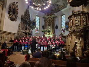 Besonders zum Abschluss sorgte der Chor für einen Gänsehautmoment: Mit dem Lied „So This Is Christmas“ wurden die Besucher ausdrücklich dazu eingeladen mitzusingen. Lauthals erklang der Refrain „War is over …“ durch die Reihen – fast wie eine kleine Friedenshymne, die perfekt zur vorweihnachtlichen Botschaft passte. In diesem Moment wurden Chor und Publikum durch die Musik zu einer Gemeinschaft, die die Kirche mit Wärme und einem Gefühl von Frieden erfüllte.