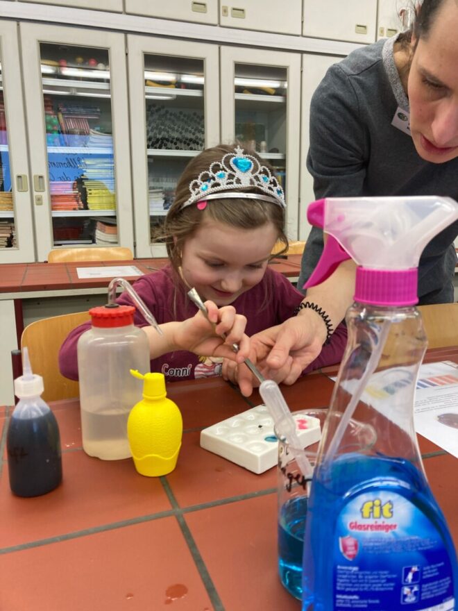 Zuschauen konnte man in den einzelnen Fachräumen, wie Rosinen tanzen, wie Blitze entstehen, wie Schleim hergestellt wird, wie Rotkohlsaft als Indikator funktioniert, wie Menschen in der Steinzeit lebten und vieles mehr.